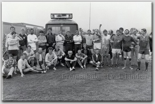 Van links naar rechts staand: Henk Hobo,Jaap van Dijk, Jos Peekel, Nico Fatels, Ben van Leeuwen, John de Vries, ???, Eef Kooij, Daan Noteboom, ???, Gerard van Velzen, Jan Pijpstra, Willem Fris, Ron Leonardt, Sjaak Timmermans, Cees Mooij, Pleun van Lente, Theo Albers en Aad de Jonge.