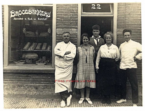 v.l.n.r. H.A. Steevens, dochter Gre, zoon Henk de vrouw van H.A. Steevens G.Stevens-Boot en zoon Piet